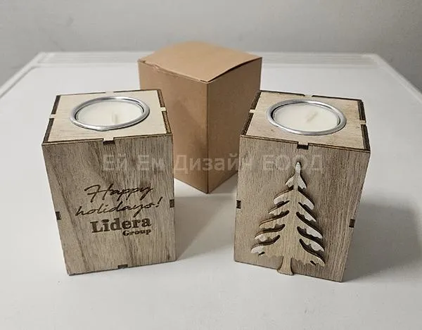 Рекламни коледни свещници брандирани чрез лазерно гравиране
