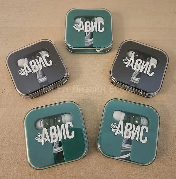 Рекламни тапи за уши в кутийка, брандирани с епълноцветен дигитален печат