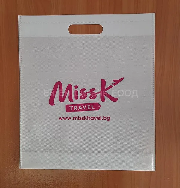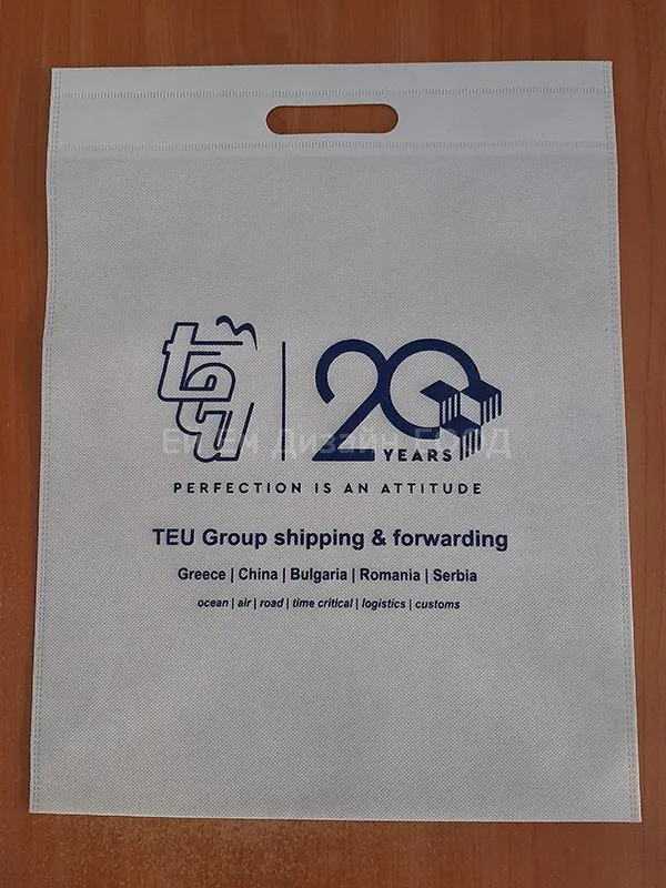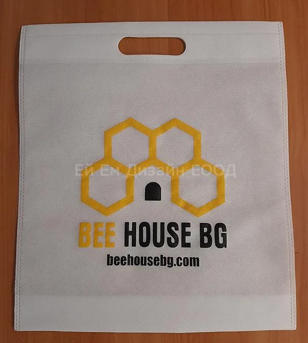 Рекламни ЕКО торби от нетъкантексил с прорязани дръжки, брандирани с един цвята печат