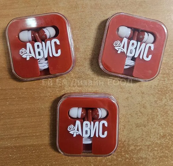 Рекламни слушалки в кутия брандирани с един цвят печат