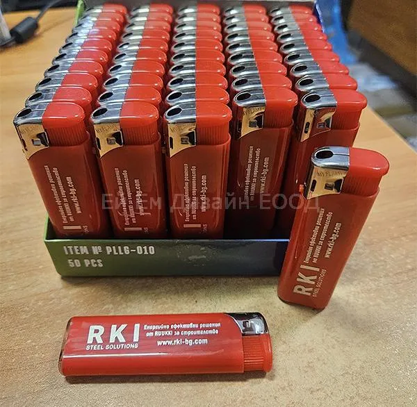 Брандиране на рекламни пластмасови запалки с един цвят печат