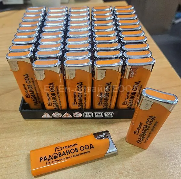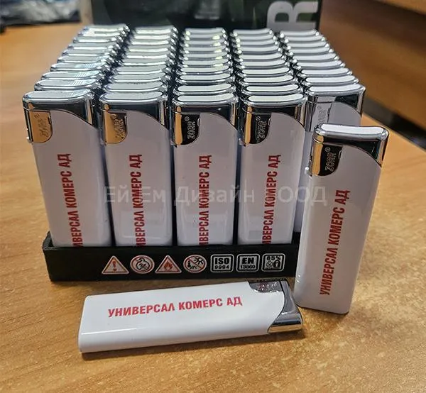 Рекламни пластмасови запалки, брандирани с един цвят печат