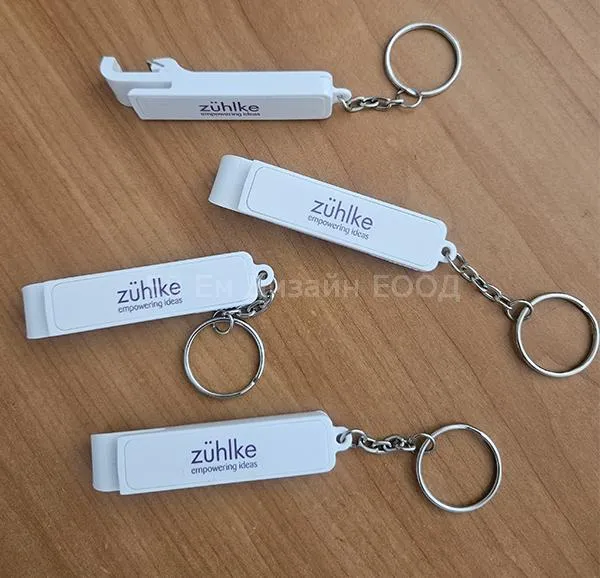 рекламни пластмасови ключодържатели брандирани с един цвят печат